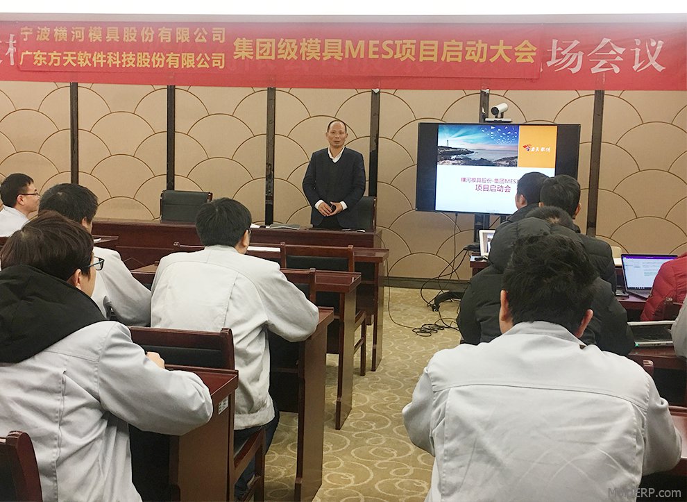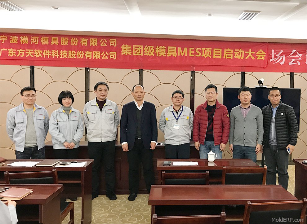 2018年1月8日下午2点在宁波横河模具股份有限公司集团总部贵宾室集团级MES项目启动大会隆重召开,横河模具胡志军董事长、陈建祥常务副总、集团财务窦保兰总监、黄飞虎总监、模具事业部陆正苗副总、广东方天软件科技股份有限公司徐泽付董事长、B9事业部夏迎福总监、罗宁总监、顾问实施部王长洪总监等各模具部门部长二十多人出席项目启动大会 ,足见双方高层对此次项目的重视,共同建立信息化、数字化和智能化的模具企业标杆企业。