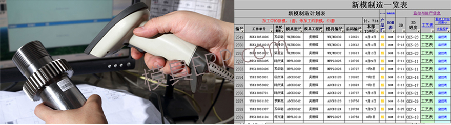 • 应用条形码技术,零件与条形码关联,标识唯一,现场直接刷卡采集,主管可查到最新的零件加工情况、模具进度和订单进度。