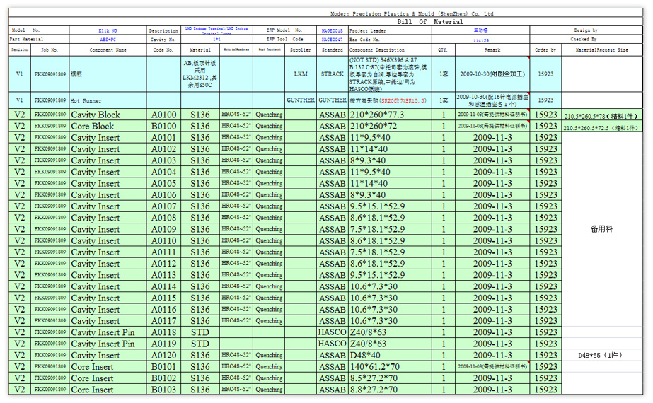 • 完整的、层次化的BOM,为模具的生产、采购提供正确的依据。