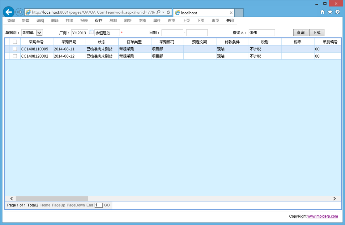 询价报价管理:实现方天模具ERP系统自动向供应商发出询价指令,供应商直接网上报价,后台自动比价。