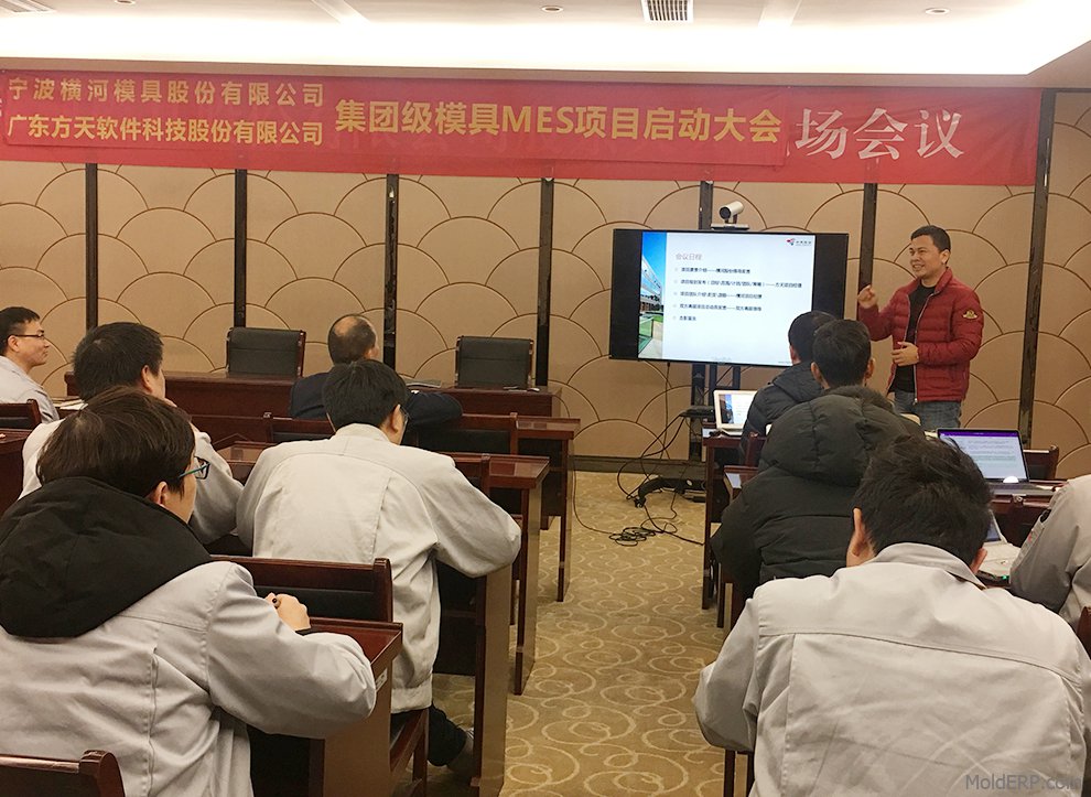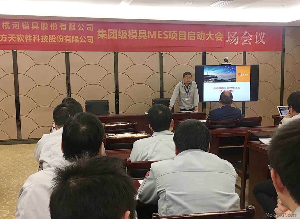2018年1月8日下午2点在宁波横河模具股份有限公司集团总部贵宾室集团级MES项目启动大会隆重召开,横河模具胡志军董事长、陈建祥常务副总、集团财务窦保兰总监、黄飞虎总监、模具事业部陆正苗副总、广东方天软件科技股份有限公司徐泽付董事长、B9事业部夏迎福总监、罗宁总监、顾问实施部王长洪总监等各模具部门部长二十多人出席项目启动大会 ,足见双方高层对此次项目的重视,共同建立信息化、数字化和智能化的模具企业标杆企业。