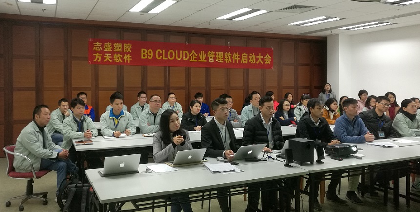 志盛塑胶副总裁 Tommy 强调了互联网+的重要性,我们如果不及时的去感知身边的变化,不去跟上前进者的脚步,那么必将被时代所淘汰,我们身处的时代就是一个趋势和变革的时代。我对这个项目是抱有百分之百的信心,我们不单是考虑系统能帮助公司在管理层面上的提升,也是对人员能力的考核,推行过程中务必要将项目当成本职工作完成并无条件全力配合此次项目的顺利上线而努力。