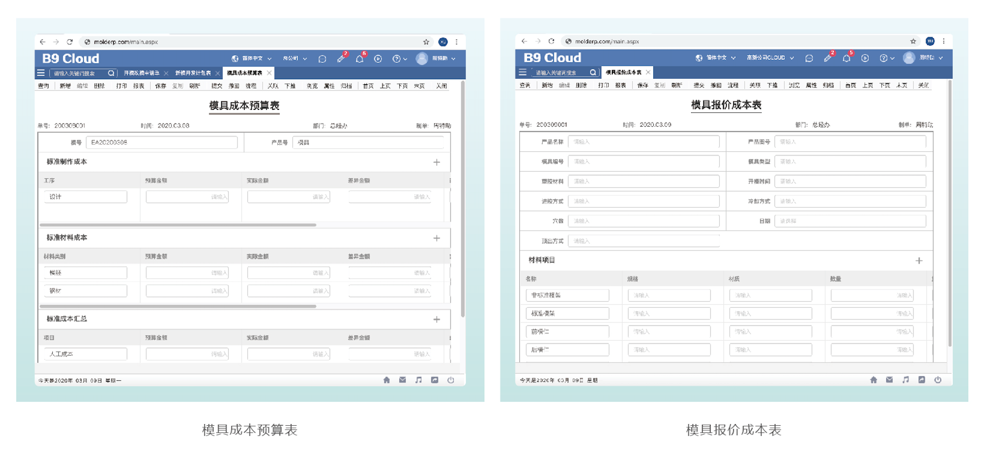 有了模具规格书,就可以进行模具成本预算,预算包括设计费用、材料费用、加工费用、试模费用和管销费用等。分为新开模具预算、复制模具预算、产品维护预算等。并对开模过程中所发生的设变成本、材料成本、工时成本等及时掌握,让管理层清楚了解这套模具成本花在哪里、哪些地方耗用了大量成本,哪些项目与当初的模具预算阶段不一致,模具是否赚钱。