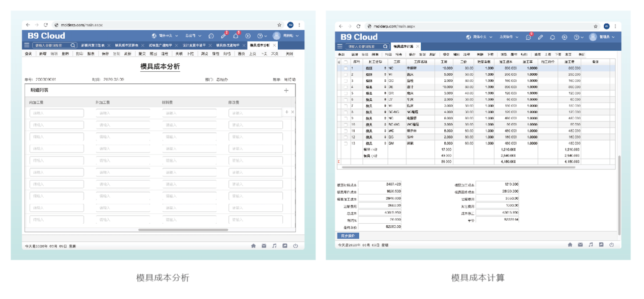 2、自动计算产品成本,支持按项目、按订单汇总模具成本,分析各成本对象的实际成本与标准成本的差异。