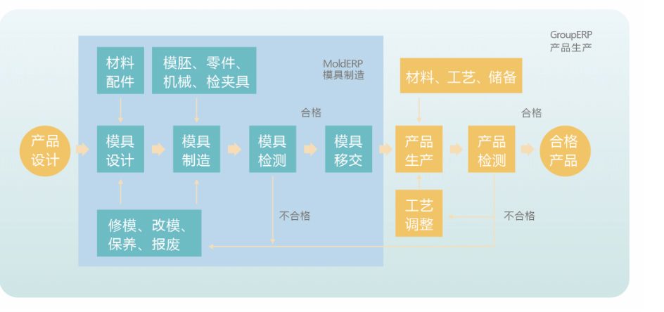 标准制定了模具管理系统软件从模具设计、开模申请、模具制造、试模验收、移模使用、维修保养、模具报废等全流程功能清单。