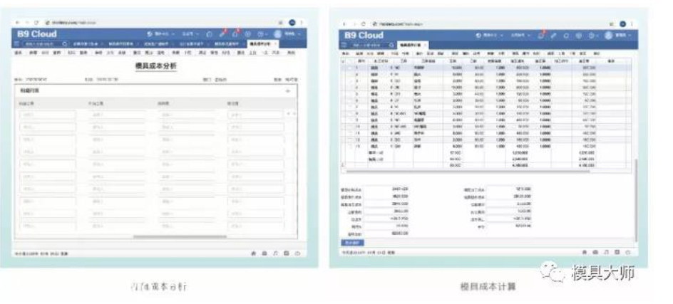 有了模具规格书,就可以进行模具成本预算,预算包括设计费用、材料费用、加工费用、试模费用和管销费用等。分为新开模具预算、复制模具预算、产品维护预算等。并对开模过程中所发生的设变成本、材料成本、工时成本等及时掌握,让管理层清楚了解这套模具成本花在哪里、哪些地方耗用了大量成本,哪些项目与当初的模具预算阶段不一致,模具是否赚钱。